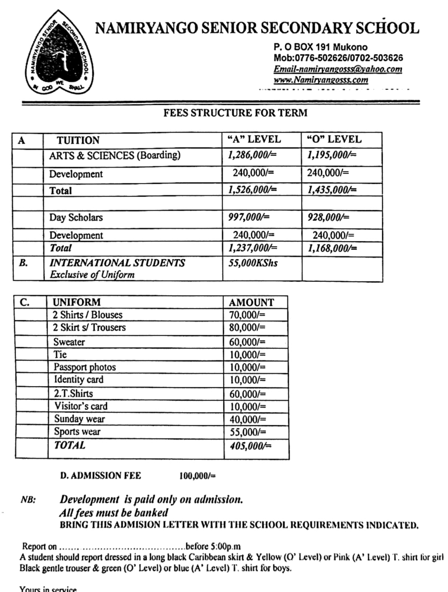 Welcome to Namiryango Senior Secondary School, where we strive to become a center of academic excellence. Our school philosophy is that no child is dull or incapable once in the right education environment. All students are capable of performing well.